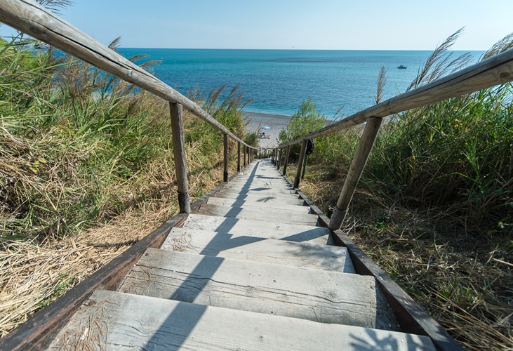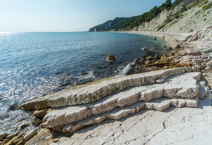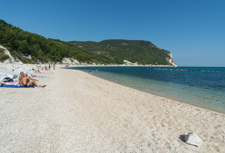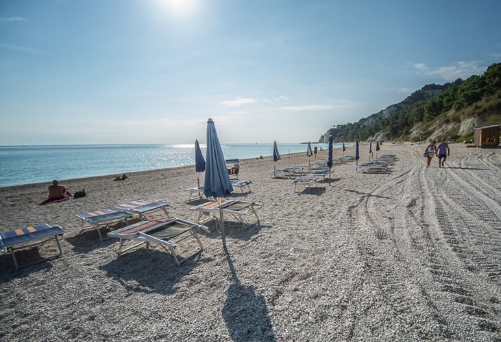 La spiaggia è raggiungibile a piedi dal centro di Sirolo passando da Via Giulietti o dal Parco della Repubblica.