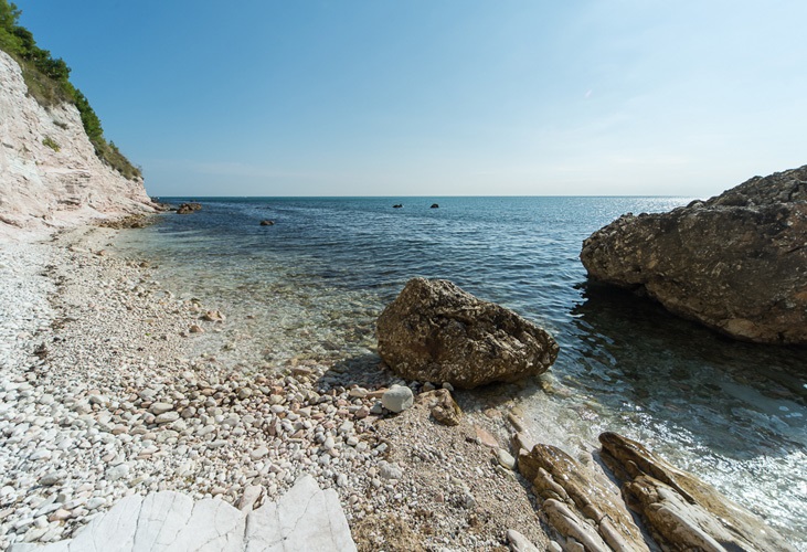 La piccola baia di san Michele è un gioiello della Riviera del Conero, incastonata alle pendici del monte Conero. La spiaggia, di sabbia e ghiaia bianca, presenta alcune zone attrezzate con stabilimenti balneari ed altre libere. Incantevole il panorama che si gode tuffandosi nell'acqua blu cobalto tipica di questa zona: girandosi verso la spiaggia, è possibile ammirare il bosco che la sovrasta e la isola dal centro abitato di Sirolo.