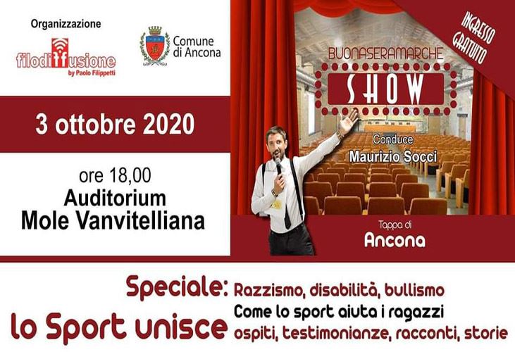 Buonasera Marche Show, l'interessante format realizzato da Filodiffusione di Paolo Filippetti, è pronto per tornare dopo il lungo stop dovuto al lockdown. L'evento, che si terrà il prossimo 3 ottobre alle ore 18 presso l'auditorium della Mole di Ancona, riparte all'insegna dei valori dello sport e dei giovani.