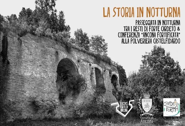 Volete vivere un'avventura al chiaro di luna? L'associazione I Sedici Forti di Ancona in collaborazione con CardetoInForma e con il patrocino del Comune, organizza una particolare visita in notturna presso i resti del Forte Cardeto, seguita dalla Conferenza "Ancona Fortificata" a cura di Claudio Bruschi, esperto e studioso di storia.