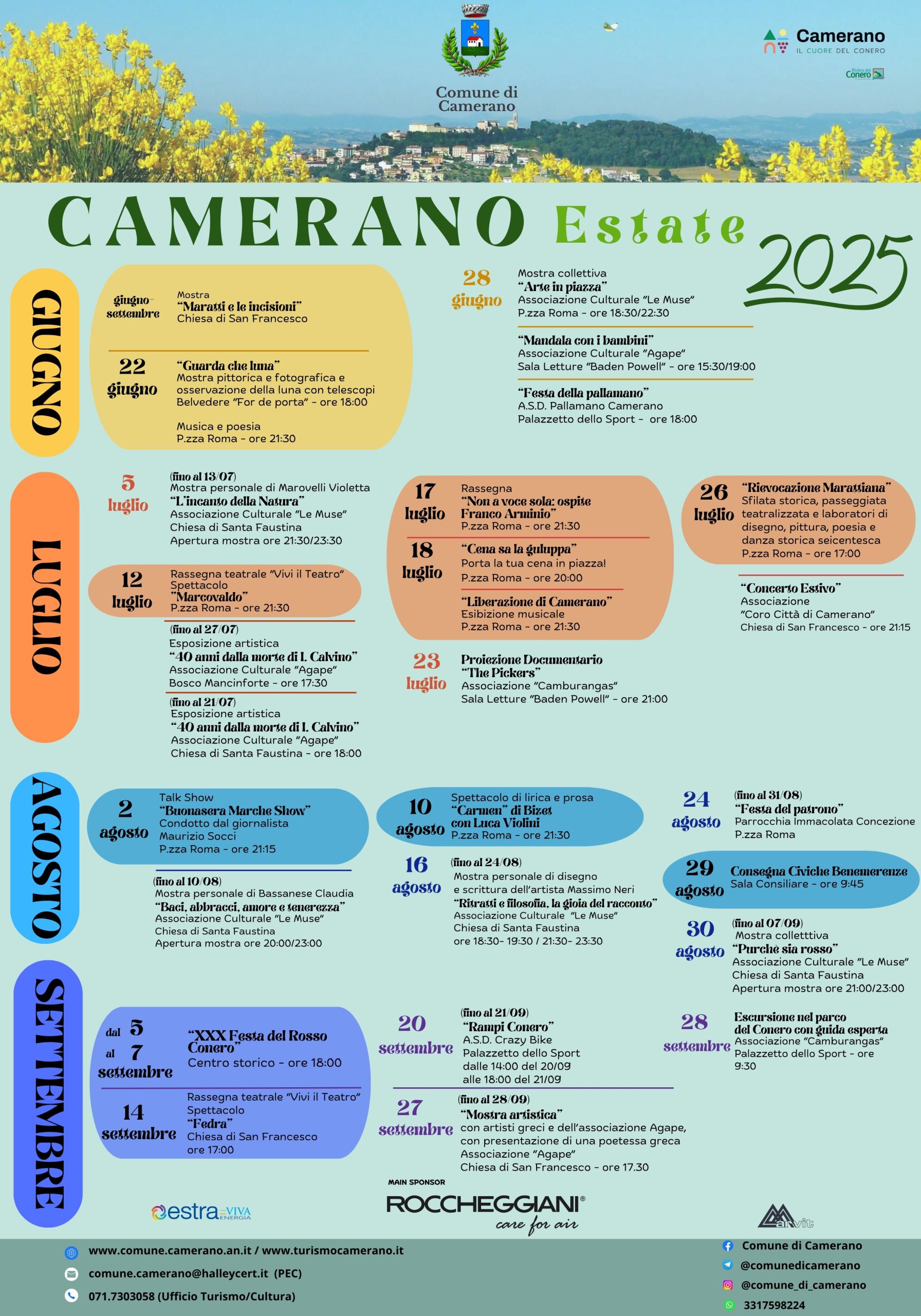 Camerano opens its doors once again to the most generous season of the year with a summer program infused with encounter, storytelling, and celebration. From art to science, from theatre to music, passing through conviviality and historical re-enactments: from June to September, this village nestled between the sea and rolling hills becomes an open-air stage ready to surprise and inspire.