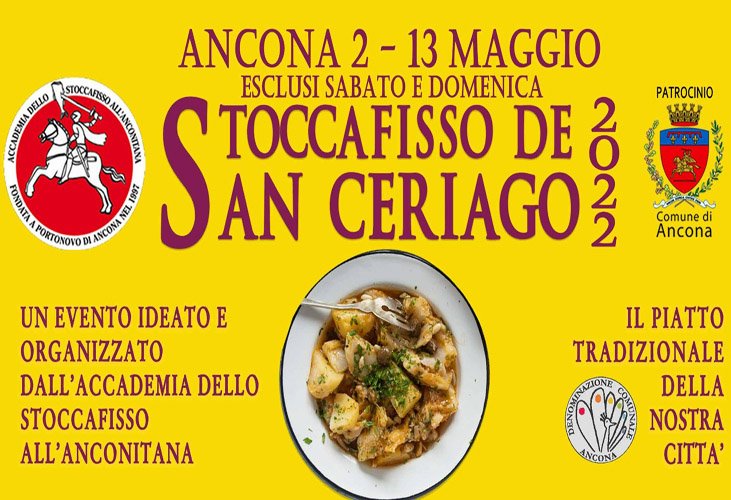 Quando si parla di Stoccafisso, il capoluogo dorico si illumina a festa. D'altronde, tra le pietanze tradizionali anconetane la preparazione dello Stocco all'Anconetana è forse una delle più apprezzate. Per celebrare l'eterno amore tra i dorici e questa prelibata pietanza, l'Accademia dello Stoccafisso all'Anconitana, con il patrocinio del Comune di Ancona, ha organizzato l'evento noto come "Stoccafisso de San Ceriago". Kemesse culinaria, che dal 2 al 13 maggio, vedrà i migliori ristoranti di Ancona e Provincia realizzare un menù a base di questo pregiato merluzzo essiccato.