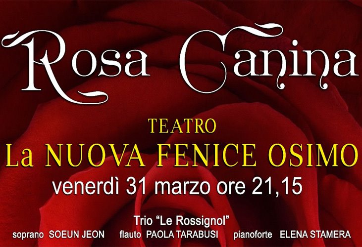 Infatti, "Rosa Canina" non è solo un concerto, ma è il palcoscenico dove si incontreranno, intrecceranno una gran varietà di arti differenti, ognuna con la propria magia, tutte per raccontare il sentimento più alto e nobile che domina l'animo umano: l'Amore. In questa mescolanza, troverete le opere e le note dei grandi compositori, proposti dal Trio "Le Rossiglnol", composto dalla soprano Soeun Jeon, dalla flautista Paola Tarabusi e dalla pianista Elena Stamera. L'esperienza, sarà accompagnata dalla voce dell'attore Davide Bugari, dalla magia di Niba, dalla danza di Valentina di Sante, e da molti altri artisti. Tutto ciò, darà vita ad un appuntamento intenso in grado di toccare a più livelli il tema dell'amore, in tutte le sue sfaccettature.