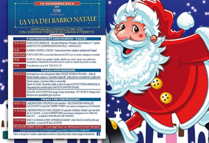 Di seguito tutto il programma dell'evento La Via dei Babbo Natale in Corso Amendola.