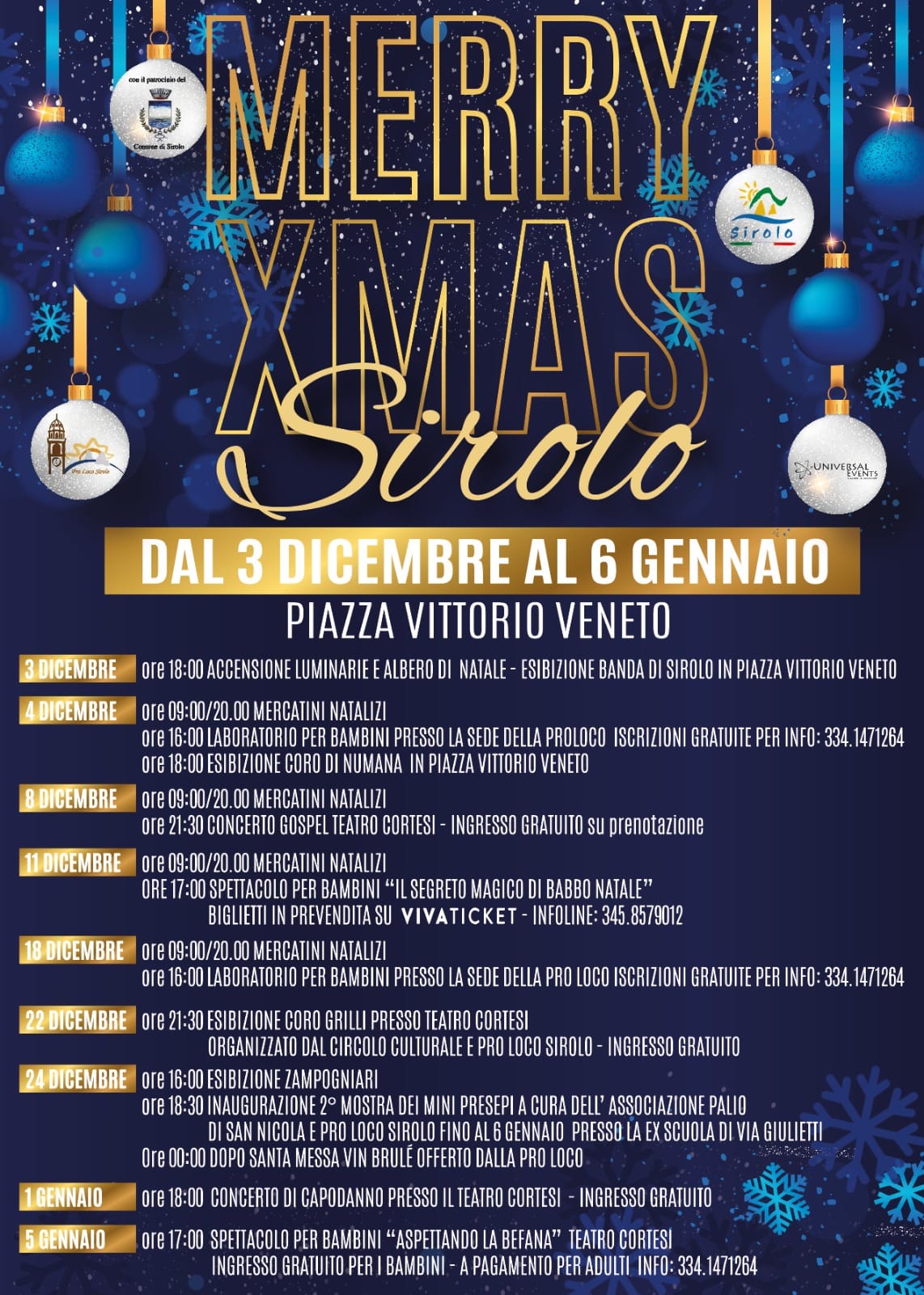 La kermesse festiva, si concluderà il 5 gennaio alle ore 17, con lo spettacolo per bambini "Aspettando la Befana". In allegato, la locandina completa degli eventi.