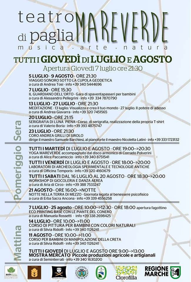 Il Teatro di Paglia Mareverde si trova in via Mareverde vicino al Villaggio Taunus di Numana; vi consigliamo di seguire la loro pagina Facebook, sempre in aggiornamento, per scoprire i vari eventi di questa estate 2016.